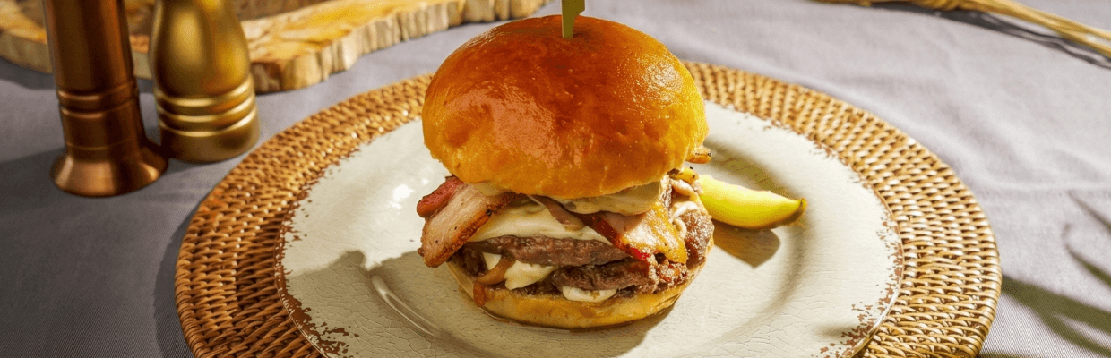Grilled & cooked to order, sautéed caramelized onion and mushroom, porcini & black truffle aioli, swiss cheese, bacon on a warm signature bun.